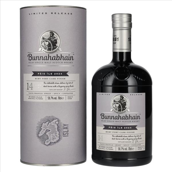 Το Bunnahabhain 14 Years Old Ruby Port Cask Matured Limited Release 2024 είναι μια αξιοσημείωτη εμφιάλωση που παραμένει πιστή στο χαρακτηριστικό στυλ του αποστακτηρίου, προσφέροντας παράλληλα μια ενδιαφέρουσα παραλλαγή. Αυτή η περιορισμένη έκδοση δημιουργήθηκε για να γιορτάσει το διάσημο Fèis Ìle, το Islay Festival of Music and Malt.